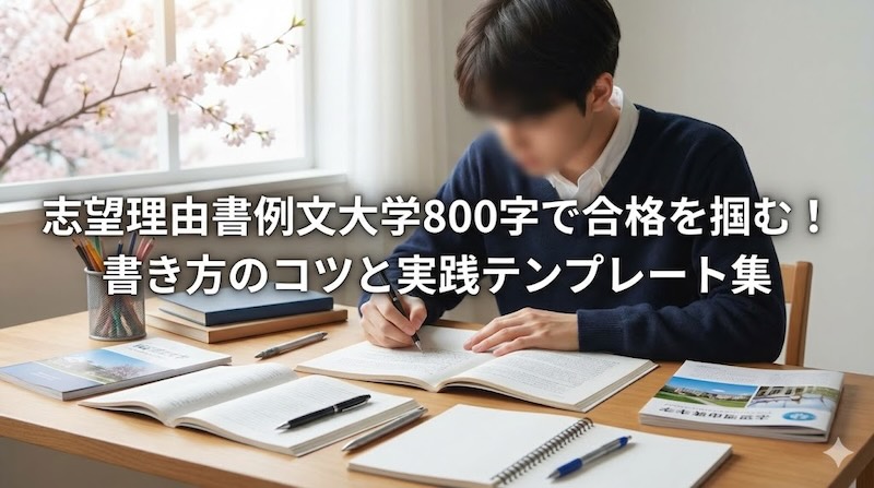 この記事を読むことで志望理由書800字の基本構成から学部別の例文、合格するための具体的なテクニックまでわかるようになりますよ。ぜひ最後まで読んでください。
