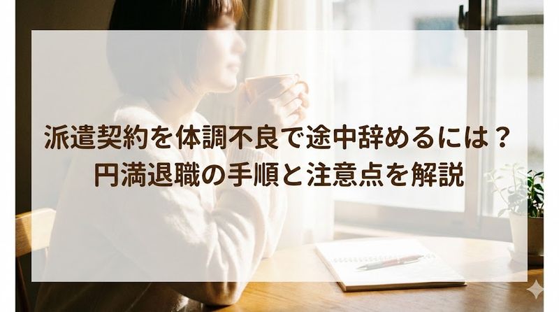 体調不良で派遣を辞めることは決して悪いことではありません。あなたの健康が何よりも大切です。誠実に手続きを進め、しっかりと体調を整えてから次のステップに進んでください。