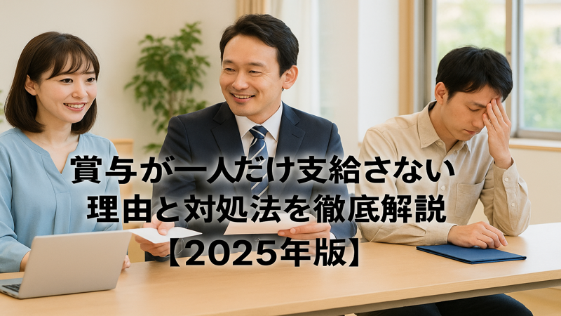 • 賞与が一人だけ支給されない理由には、人事評価の低さ、勤務期間の不足、懲戒処分、雇用形態の違いなどがある